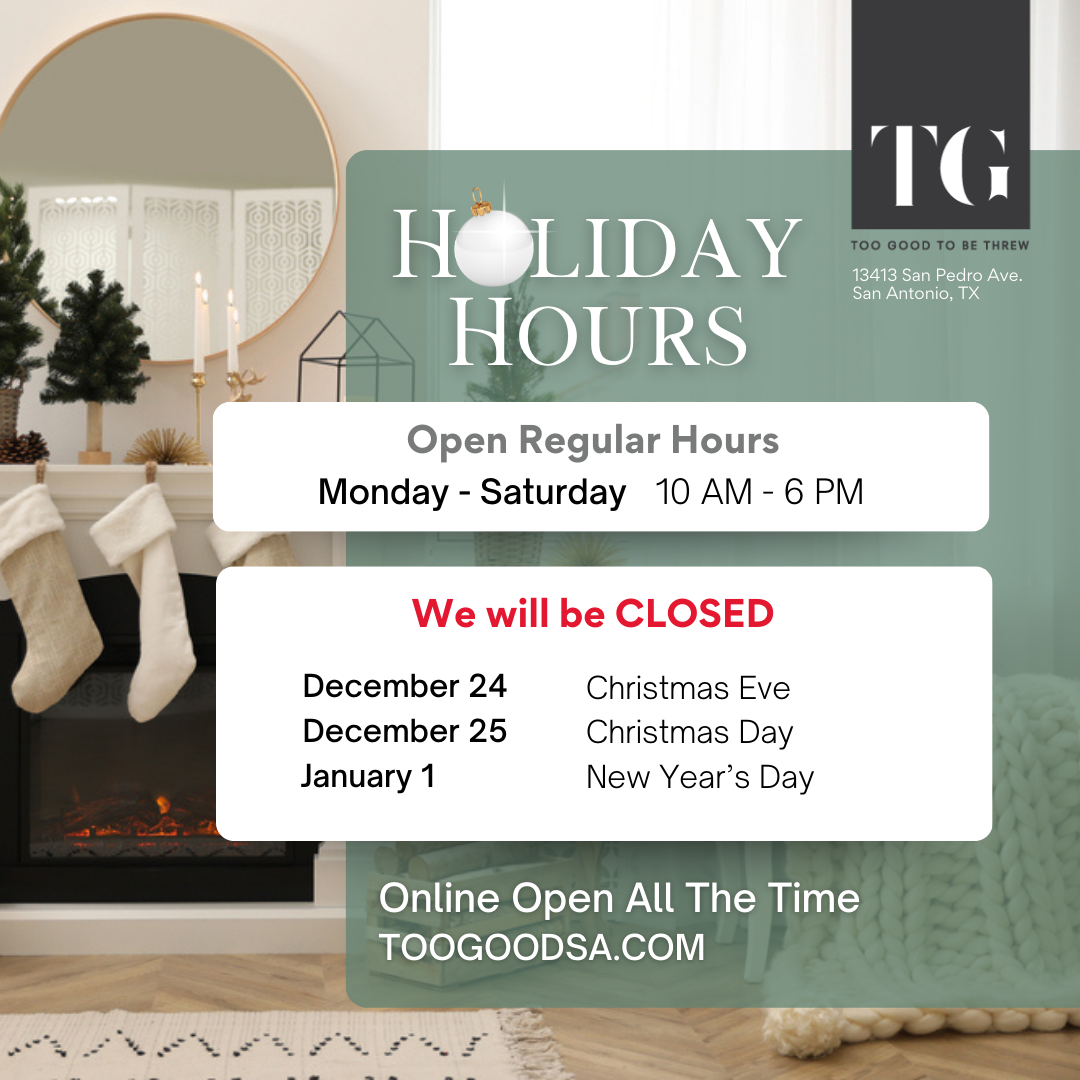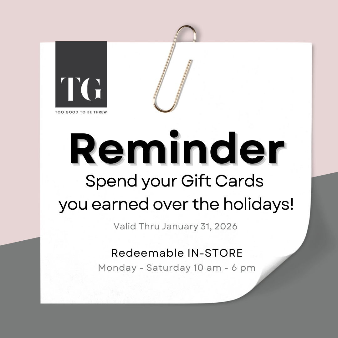 Are you downsizing, relocating or redecorating? Do you have wonderful things in your home that you no longer utilize or that fit into your home’s current design scheme? Too Good To Be Threw is the perfect place to showcase your items for others to purchase and enjoy.